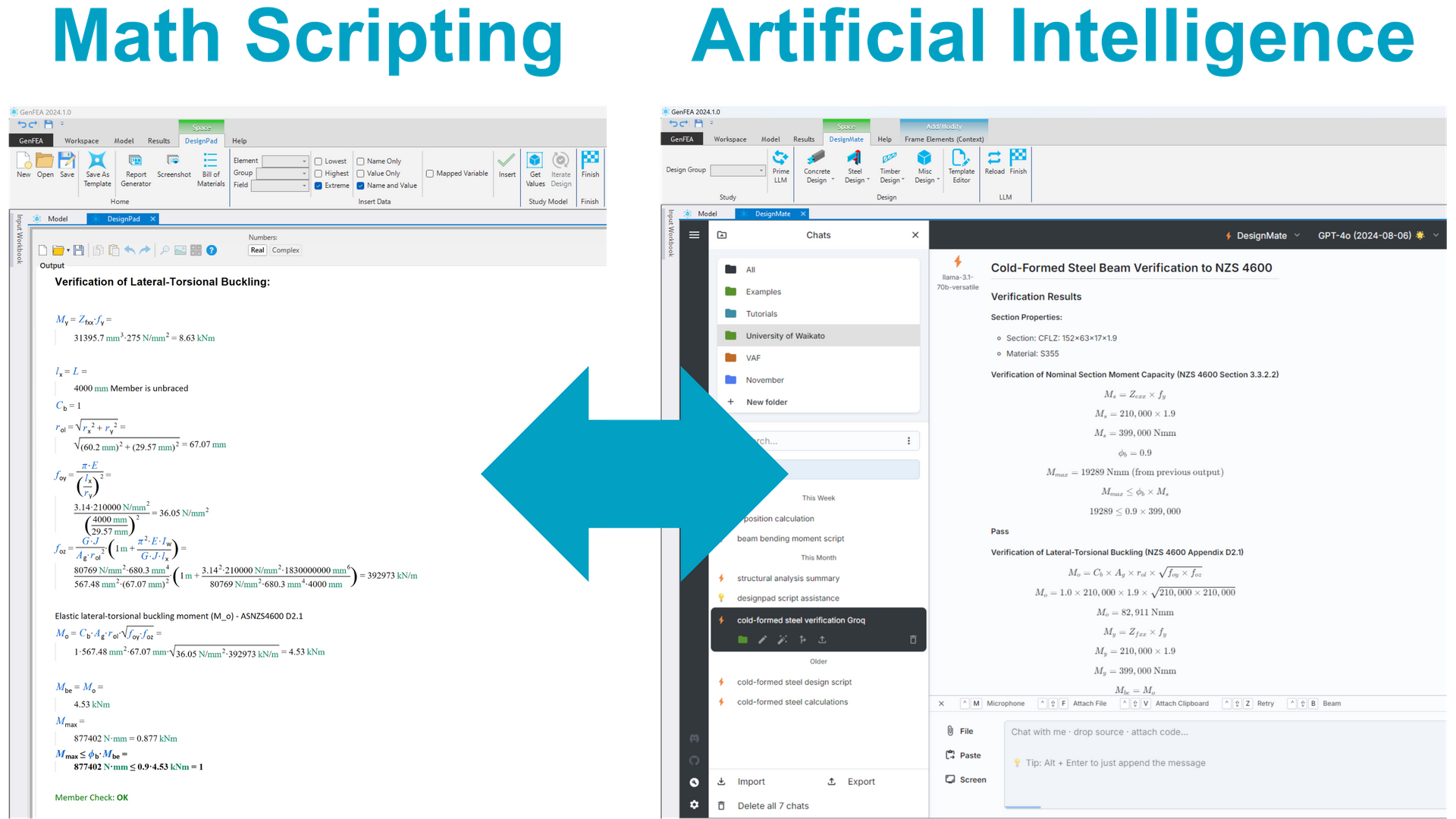 GenFEA, our versatile solution for Structural Analysis and Design, offers AI-enhanced design features, swift model creation capabilities, a C# scripting engine for custom functionality, seamless integration with other software via an open XLSX format, and sophisticated 3D modeling tools.